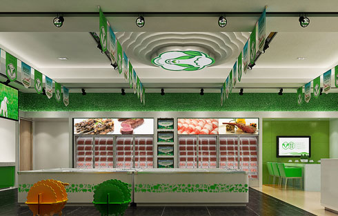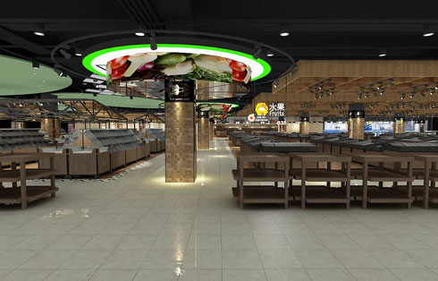 上海公裝公司案例:本案生鮮超市后現(xiàn)代工業(yè)風(fēng),賣場(chǎng)個(gè)性化設(shè)計(jì),點(diǎn)睛綠可讓整個(gè)空間鮮活起來(lái)。